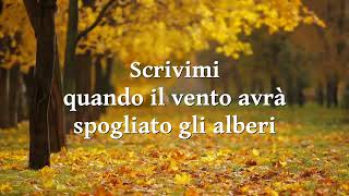 10+ Trucchi per memorizzare le note sulla Chitarra. Scarica Gratis l'Ebook!Intro: LA RE/LA LA RE/LA LA LA Scrivimi... RE7+ quando il vento avrà spogliato gli alberi LA gli altri sono andati al cinema DO#m7 RE7+ ma tu vuoi restare sola LA/DO# SIm7 RE/MI poca voglia di parlare allora... LA RE/LA LA Scrivimi... RE7+ servirà a sentirti meno fragile LA quando nella gente troverai DO#m7 RE7+ solamente indifferenza LA/DO# SIm7 RE/MI LA RE/LA LA RE/LA LA tu non ti dimenticare mai di me.. MI7 REadd9/FA# MI/SOL# LA E se non avrai da dire niente di particolare RE SOL#m7/5- non ti devi preoccupare DO#7 FA#m SIm7 io saprò capire MI7 REadd9/FA# a me basta di sapere MI/SOL# LA che mi pensi anche un minuto.. RE SOL#m7/5- perché io so accontentarmi DO#7 FA#m7 anche di un semplice saluto SIm7/9 ci vuole poco.. RE/MI per sentirsi più vicini LA RE/LA LA Scrivimi... LA4 RE7+ quando il cielo sembrerà più limpido LA4 LA RE/LA LA le giornate ormai si allungano DO#m7 RE7+ ma tu non aspettar la sera LA/DO# SIm7 RE/MI se hai voglia di cantare RE#m7/5- FA6 Scrivimi... MI7 LA RE#m7/5- anche quando penserai REm7 SOL7/4 che ti sei innamora--taDO DO4 DO FA7+ DO MIm7 FA7+ DO/MI REm7 FA/SOL DO DO4 DO Tu non ti dimenticare mai di me SOL7 FAadd9/LA e se non sai come dire SOL/SI DO se non trovi le parole FA7+ SIm7/5- non ti devi preoccupare MI7 LAm REm7 io saprò capire SOL7 FAadd9/LA a me basta di sapere SOL/SI DO che mi pensi anche un minuto FA7+ SIm7/5- MI7 LAm perché io so accontentarmi anche di un semplice saluto REm7 ci vuole poco FA/SOL per sentirsi più vicini FA#m7/5- FAm Scrivimi... DO FA#m7/5- anche quando penserai.. FAm7 SOL7/4 SOL che ti sei innamora---ta DO DO4 DO DO4 DO DO4 DO ..Tu scrivimi
